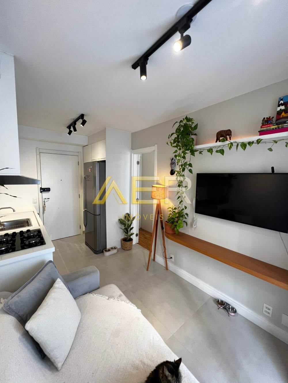 Spots de iluminação instalados em todo o apartamento.