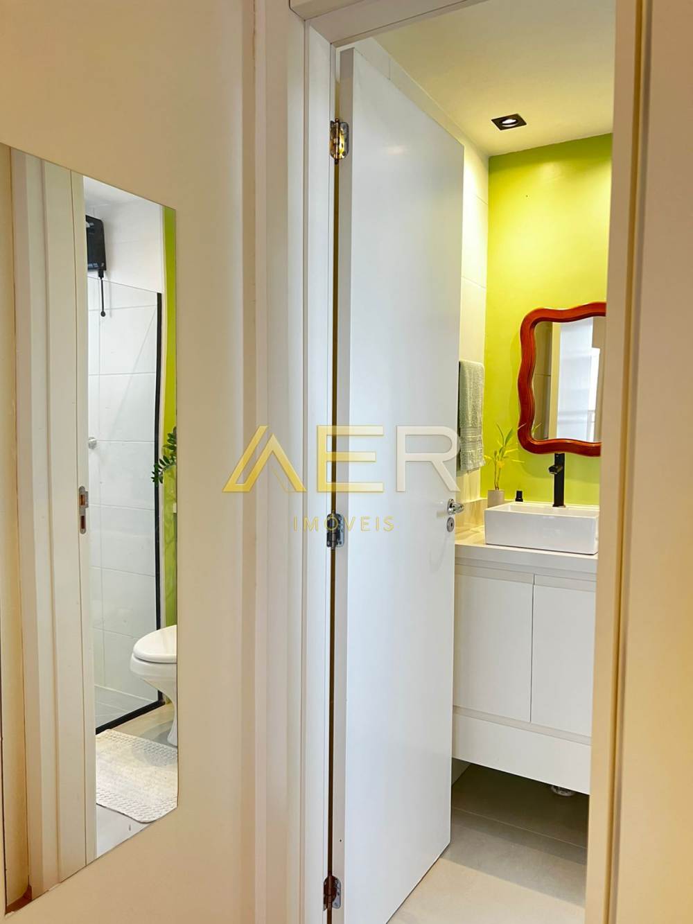 Banheiro com armário sob medida.