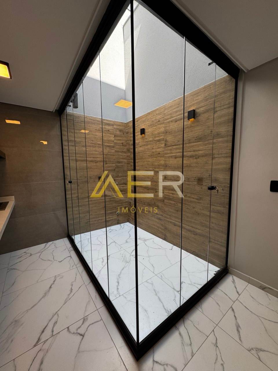 Jardim de inverno com fechamento em vidro, garantindo luz natural e ventilação